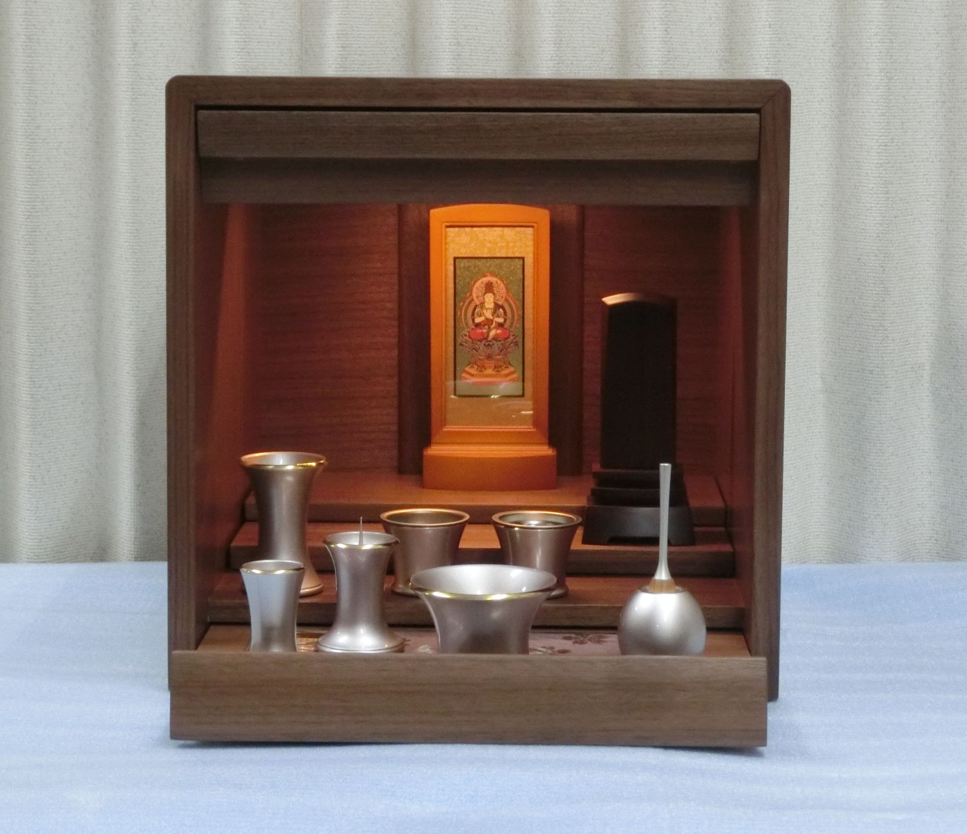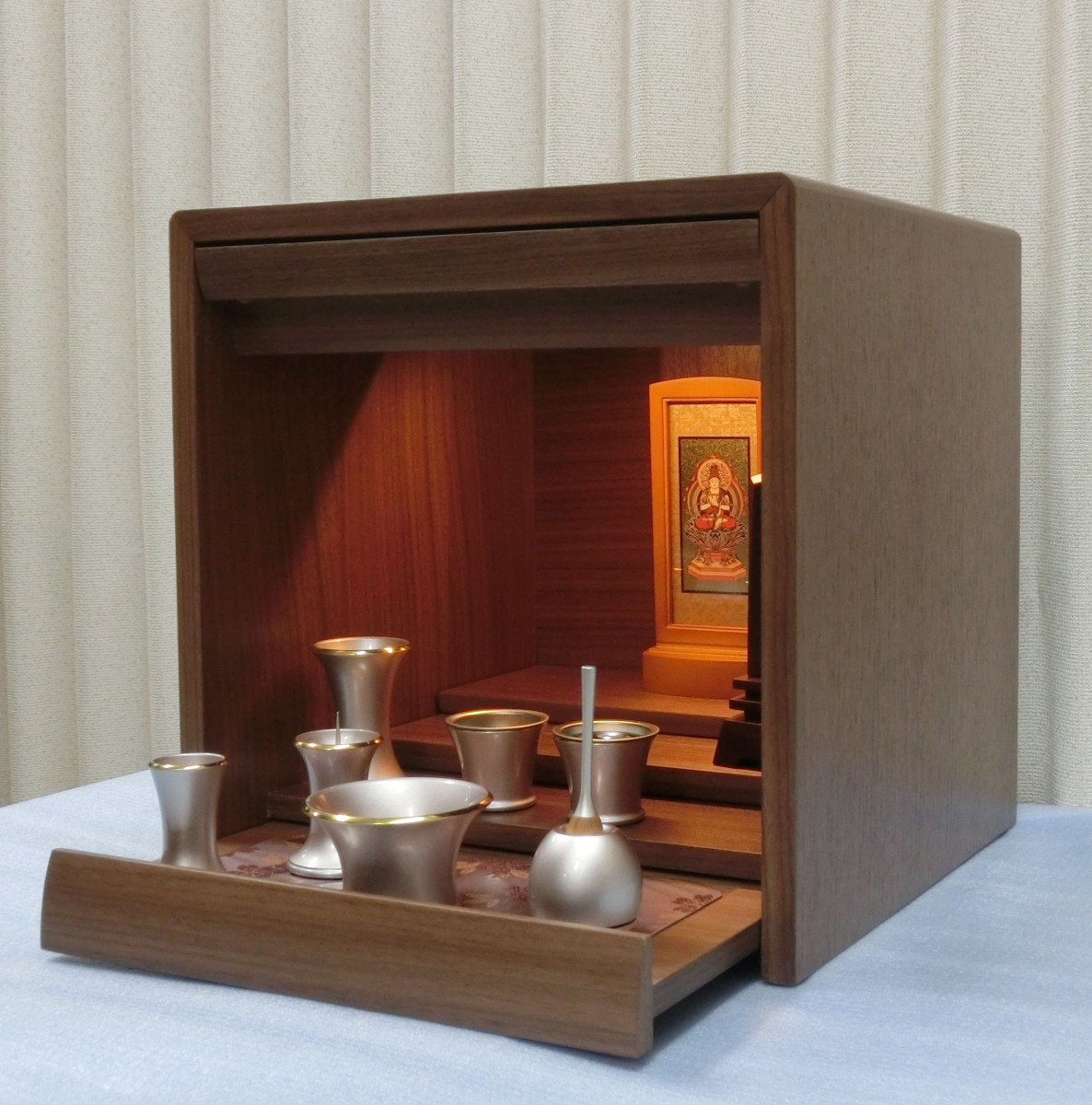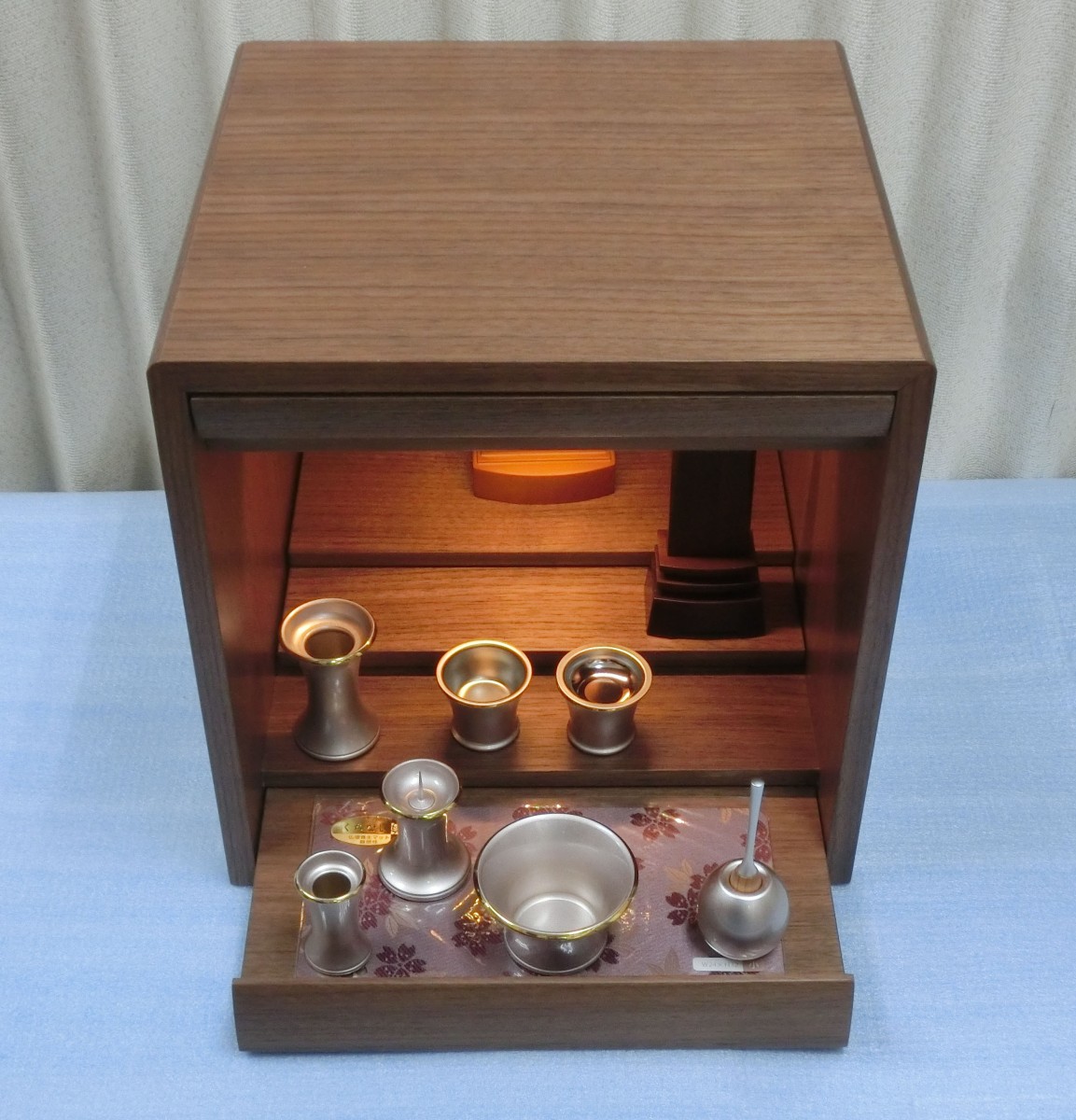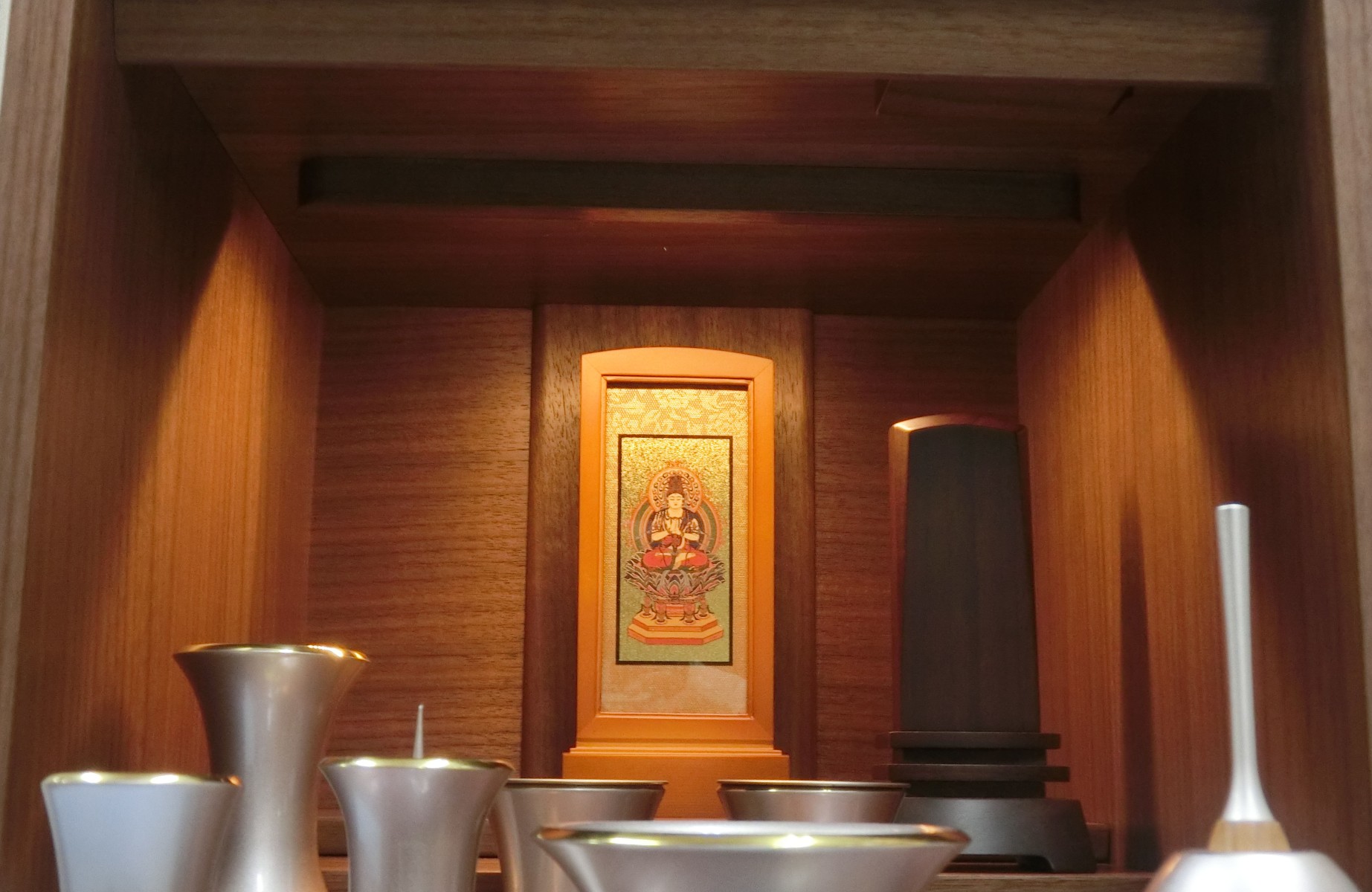 - ※このお仏壇をご購入の方には、インターネット特別割引券のご利用またはセット仏具のご提供、どちらかお得な方をお選びいただけます。(セット仏具は、さまざまなお仏具の中よりお選びいただけます。)※掲載写真内の本尊・仏具・位牌はイメージです。