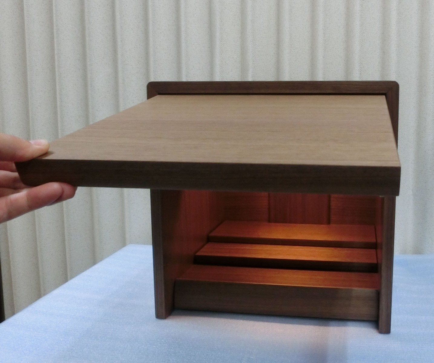 色は写真のウォールナットの他、明るいタモ材を使用した物もご用意可能です。