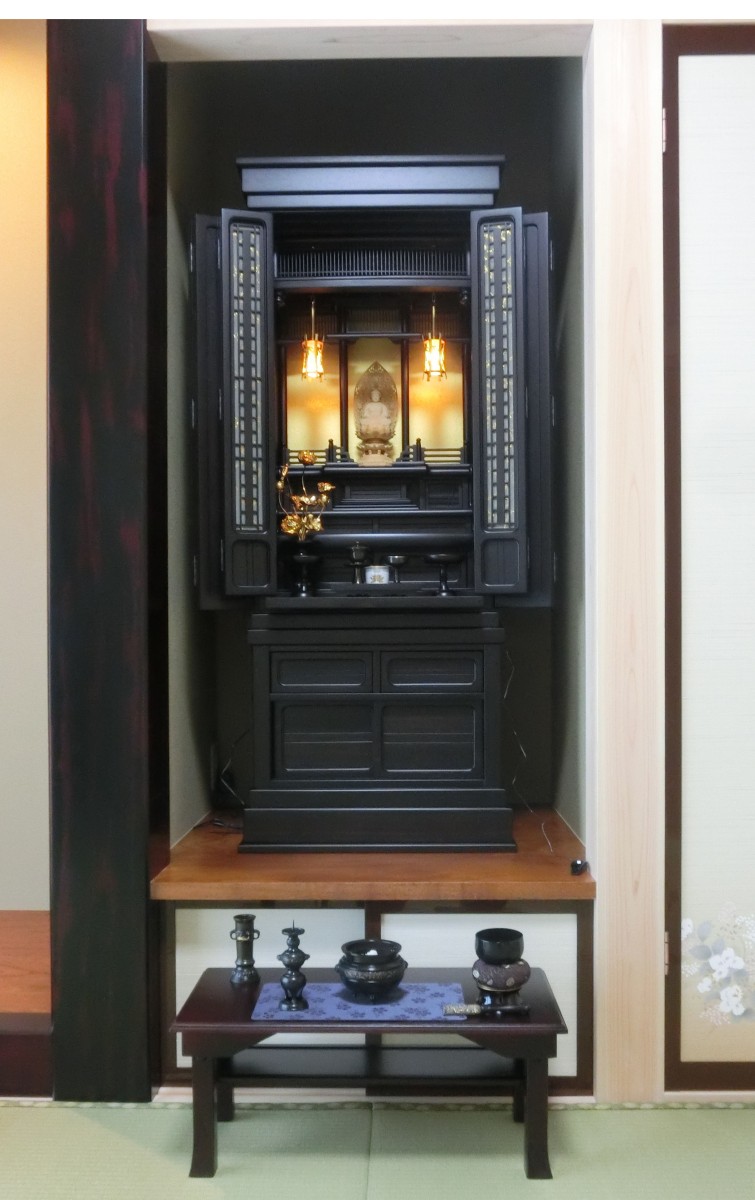 川崎市宮前区 W様 2024/12/21 仏壇名 黒檀材台付仏壇 サイズ 高さ140×巾56×奥行49(㎝) お仏壇紹介 黒檀材を使用した唐木モダン仏壇です。 重厚な黒檀材を使用し台付仏壇です。 綺麗に仏間にお納めすることが出来ました。